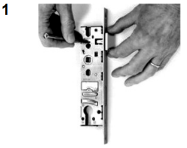 1. Schlitzschraubendreher in die Öffnung am Hauptschlosskasten drücken und gleichzeitig die Falle herausziehen
