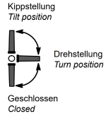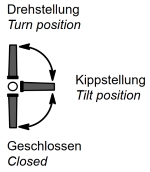 Hierbei lässt sich bei der ersten Griffbedienung das Fenster nur auf Kipp stellen und erst mit der zweiten Griffbewegung komplett öffnen (Drehöffnung).